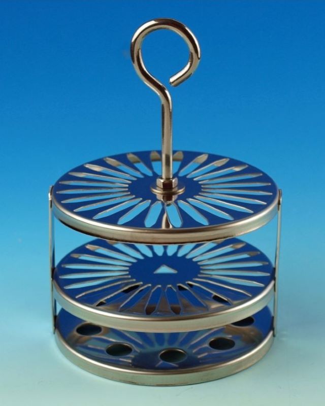 Färbegestell für 42 Objektträger passen zu Glaszylinder mit einem Innendurchmeser von mindestens 14 cm. Gestell aus 18/10 Edelstahl geeignet für 26mm breite Objektträger